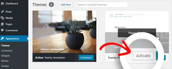 Step 4. Switch to a default WordPress theme