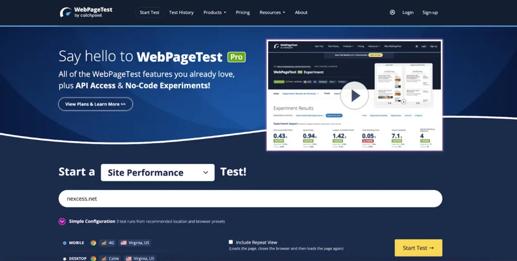Let us start with WebPageTest. WebPageTest is a free website speed test service. It provides real examples of how long each website takes to load. You can run a free speed test on your local machine or on any remote site.