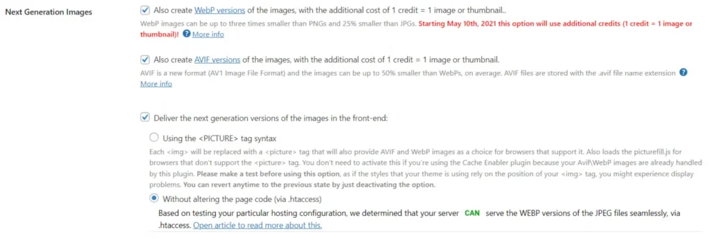 The ShortPixel Image Optimizer WordPress plugin supports the next generation image file formats of WEBP and AVIF. Image converted to next-generation image format can result in smaller image files, which means the images will be faster to load for the website’s visitor.