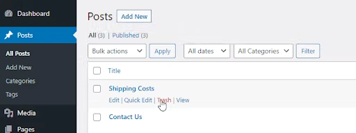 If you accidentally delete a post or page, it goes to the Trash folder, which works as a Recycle Bin on the computer.