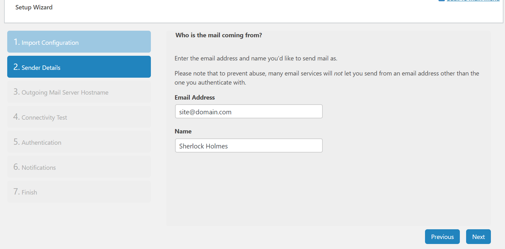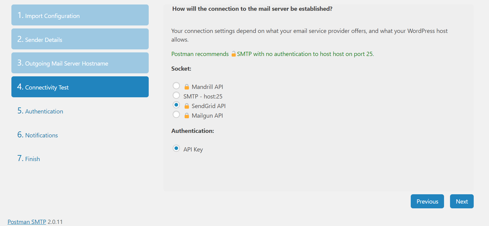 Post SMTP has an easy to use setup wizard which will guide you through the site email you would like to use and then select which API are going to use.