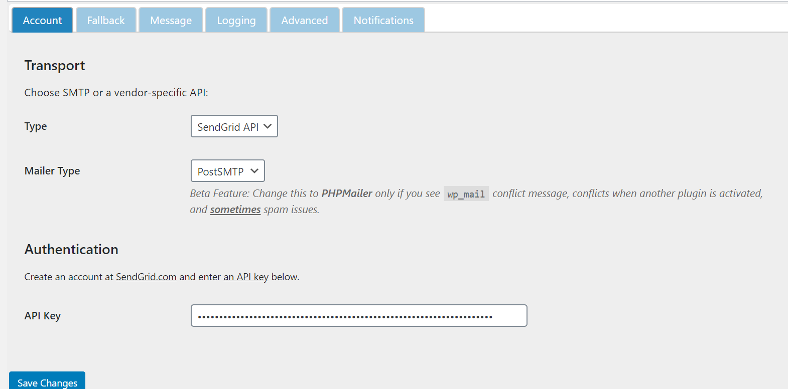 Post SMTP Plugin + SendGrid
