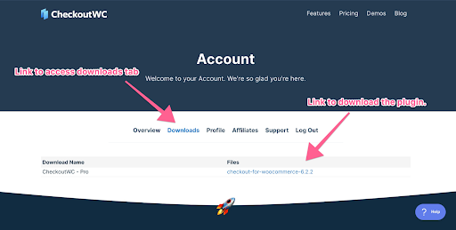 Now that you know where to find your license key, you can go to the downloads tab and download the plugin to install on your WooCommere website.