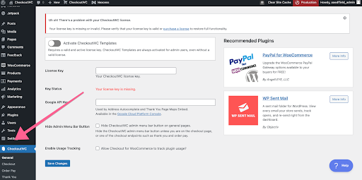 To add your license key, go to WordPress Admin ▸ CheckoutWC ▸ General.