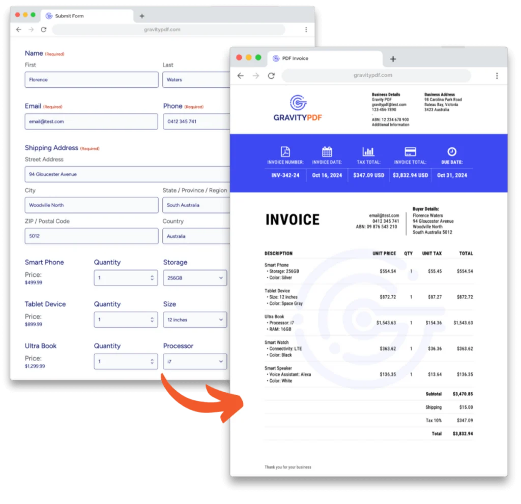 Generate downloadable PDFs automatically after form submission.