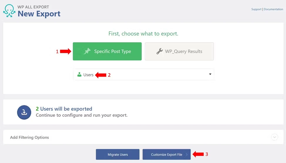 Whether you’re trying to create a mailing list or move users from one WordPress website to another, WP All Export allows you to quickly and easily export what you need. You can: